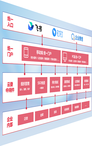 对协作平台提供支持服务,,支持企业应用与协作平台对接,,包含组织同步、、、消息集成、、、、待办集成等。。支持目前主流的协作平台:钉钉、、、企微和飞书。。。。